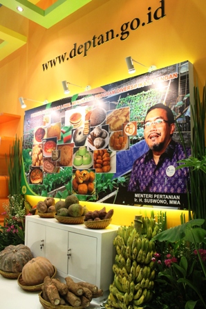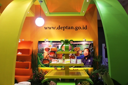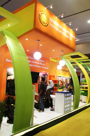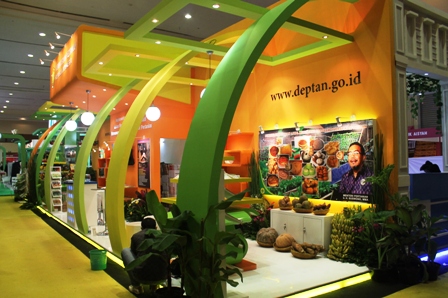 PT Media Artha Pratama dalam pameran ini dipercaya untuk membangun stan Kementerian Pertanian. Terinspirasi dari nama pameran, tim dari PT Media Artha Pratama membuat stan dengan nuansa pelangi, seperti tampak dalam gambar yang diabadikan oleh fotografer kami, Elvis. (ONE)
