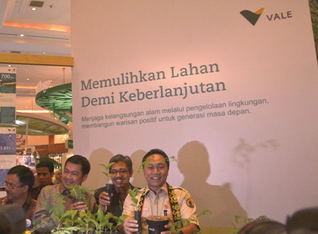 Direktur External Relations, PT Vale Indonesia Tbk, Kamba Basrie berbincang bersama Menteri Kehutanan, Zulkifli Hasan tentang program rehabilitasi lahan tambang di stand PT Vale pada pameran Indogreen, Expo 2013, yang berlangsung tanggal 4 – 7 April di Assembly Hall JCC. PT Vale telah membangun kebun pembibitan (nursery) yang menghasilkan 700.000 pohon per tahun dan merehabilitasi sekitar 110 hektar lahan setiap tahun. Demi menerapkan Good Mining Practice, PT Vale berkomitmen menjadi perusahaan tambang yang baik dan bertanggung jawab pada keberlangsungan ekosistem dan lingkungan.