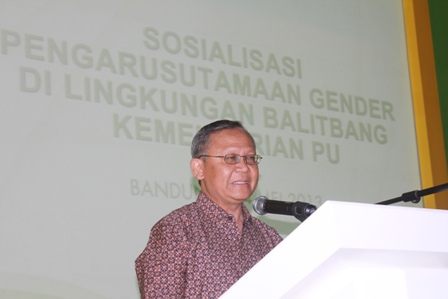 “Balitbang sudah merapkan kesetaraan gender. Terbukti sudah banyak pejabat dan peneliti yang berimbang dalam melaksanakan tugas penyediaan infrastruktur, tanpa diskrimninasi,”ujar Kepala Badan Litbang PU Graita Sutadi saat membuka Sosialisasi Pengarusutamaan Gender Kementerian PU di Graha Wiksa Praniti Bandung, (24/5/2013).