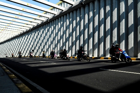 Judul foto, "Layak dan Nyaman." Tampak sejumlah pengendara motor melintas di semi tunnel (semi terowongan) Jalur Lingkar Nagreg Kabupaten Bandung, Jawa Barat, Minggu (5/8). Jalur utama Lingkar Nagreg yang merupakan salah satu pusat jalur mudik di jalur selatan Jawa Barat hingga saat ini dinilai layak digunakan saat arus mudik.