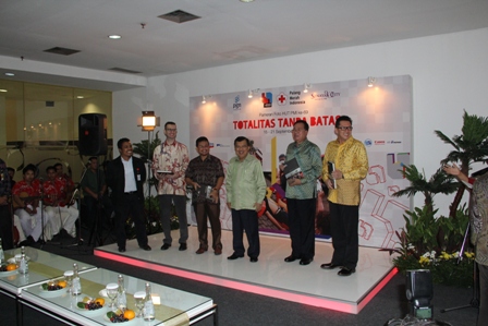"PMI bekerja untuk memberikan pelayanan (berdasarkan) kemanusiaan," kata Jusuf Kalla, Ketua PMI, saat membuka Pameran Foto yang sekaligus peluncuran buku Menembus Batas: Catatan Perjalanan Kemanusiaan di Senayan City, Jakarta (18/9/2014).